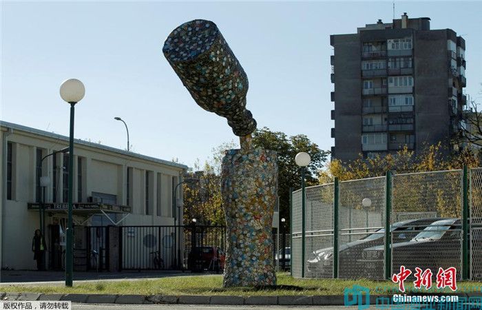 城會玩!黑山藝術家建5米高“酒瓶”雕塑