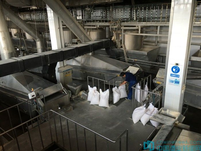 整個(gè)過(guò)程,糧倉(cāng)到三樓,再到一樓,僅僅能在糧食進(jìn)高壓鍋和輸進(jìn)料斗時(shí)看見(jiàn)酒紅色的高粱米。
