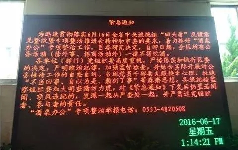 據(jù)安徽安慶桐城市紀委近日發(fā)布消息稱,中央巡視組巡視安徽“回頭看”反饋意見安慶整改部署動員大會召開后,桐城市紀委迅速落實會議精神,下發(fā)關(guān)于在公務(wù)接待活動中嚴禁飲酒的通知。通知強調(diào),進一步加強作風建設(shè),嚴肅工作紀律,堅決整治“酒桌辦公”現(xiàn)象,自2016年6月17日起,除外事和招商引資工作外,省內(nèi)公務(wù)接待一律不準飲酒(包括所有含酒精類飲品)。