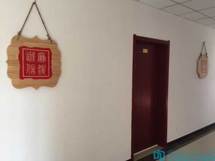 橫山縣公安局長辦公室門外墻上掛著兩塊警示牌,分別寫著“廉潔誠信”和“要廉潔必自律”。 記者 王健 圖