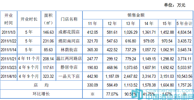 2011年開業(yè)的所有門店歷年經(jīng)營情況表——