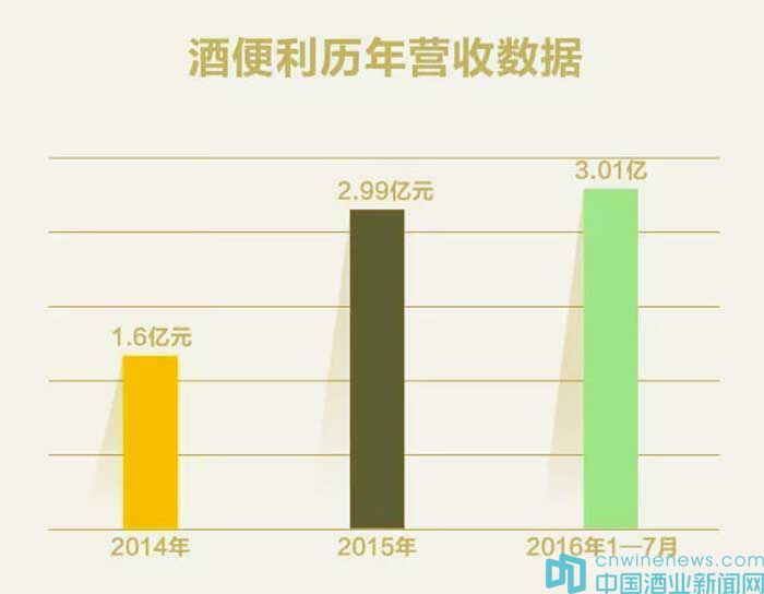 據(jù)酒便利向記者提供的數(shù)據(jù),2016年1-7月,公司實(shí)現(xiàn)收入(含稅)達(dá)3.01億元,較2015年1-7月同比增長(zhǎng)58.83%;這也意味著,截止7月底,酒便利的營(yíng)收已經(jīng)超過(guò)了2015年全年的2.99億營(yíng)收。