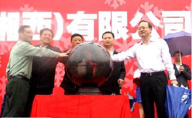 湖南省湘西州委書記葉紅專宣布“華潤雪花啤酒(湘西)有限公司正式竣工投產”,并與州人大常委會主任彭武長,州委常委、副州長龍靖波,州委常委、吉首軍分區政委鄧永忠,華潤雪花啤酒湖北區域公司黨委書記、總經理宋占民共同啟動財富球。