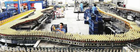 “如今除驗瓶、驗酒兩道工序實行人機配合外,灌裝、殺菌、封蓋等工序均實現自動化操作。”該公司總經理吳永陽介紹,目前該公司已建成投產3條全純生化瓶裝啤酒生產線和1條易拉罐純生啤酒生產線,年生產能力達到35萬噸。
