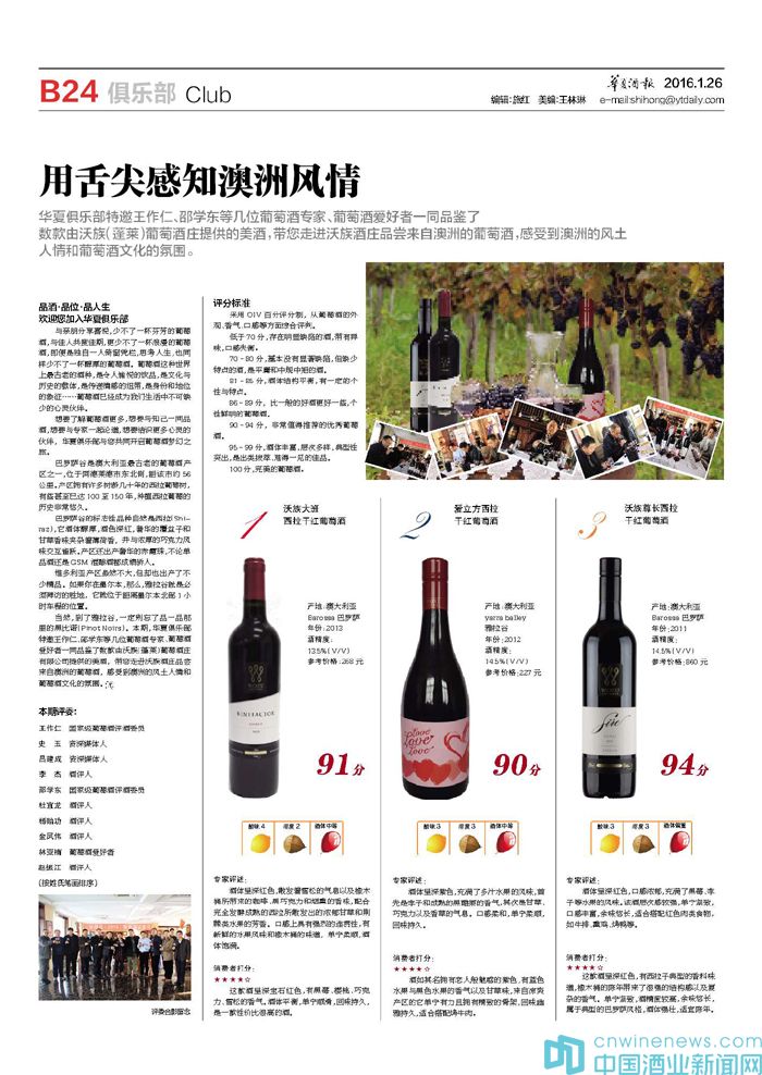 華夏俱樂部特邀王作仁、邵學東等幾位葡萄酒專家、葡萄酒愛好者一同品鑒了數款由沃族(蓬萊)葡萄酒莊提供的美酒,帶您走進沃族酒莊品嘗來自澳洲的葡萄酒,感受到澳洲的風土人情和葡萄酒文化的氛圍。