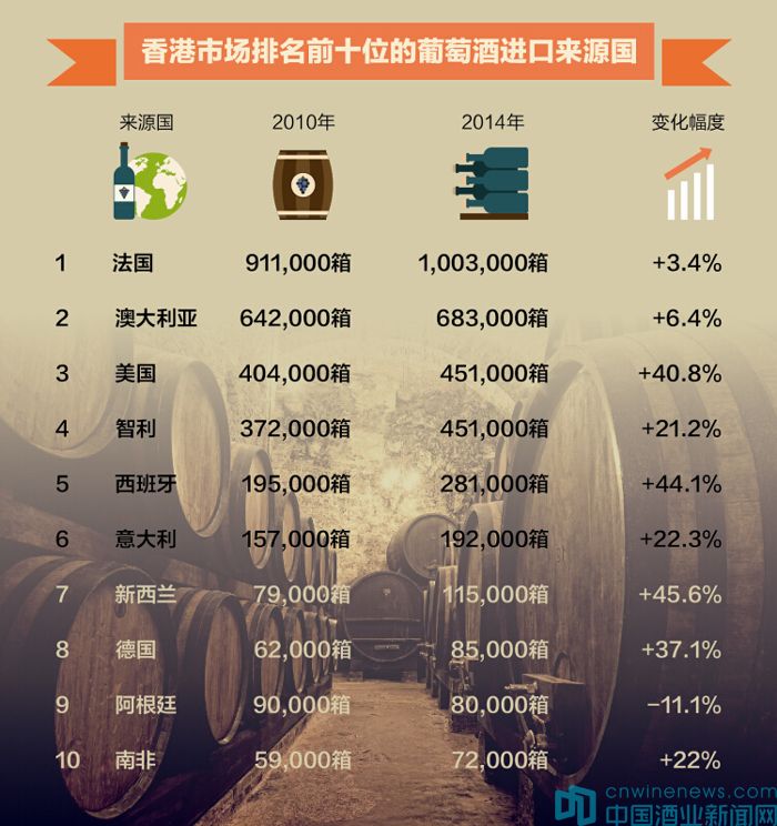 6、意大利:2010年,157,000箱;2014年,192,000箱;變化幅度:+22.3%。