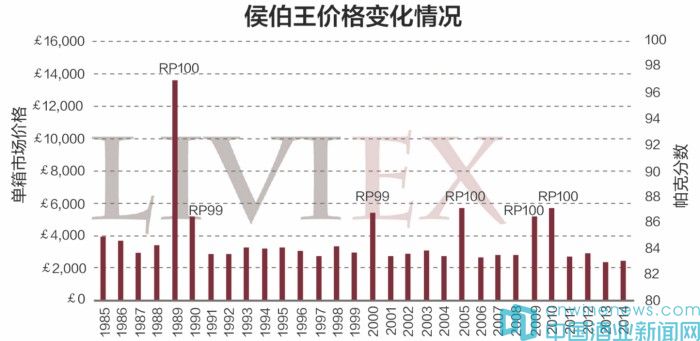 從圖表中我們可以看出,這款獲帕克垂青的1989年份侯伯王價格遠遠高于其他年份,甚至比第二高價年份2005年份還高出139%。