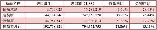 除了葡萄汽酒繼續下降以外,瓶裝酒和散裝酒均有不錯的表現。據上述數據顯示,2016年1-4月我國酒類進口金額13.3億美元,同比增長36 .7%,其中排名第一的是瓶裝葡萄酒,占據進口葡萄酒總額的94.1%,進口金額7 .5億美元,同比增長46.4%;瓶裝葡萄酒的進口均價5.18美元/升,同比上漲12.4%。一系列現象說明國內消費者對于進口瓶裝葡萄酒的認可和喜愛程度越來越高,市場需求穩步增長。
