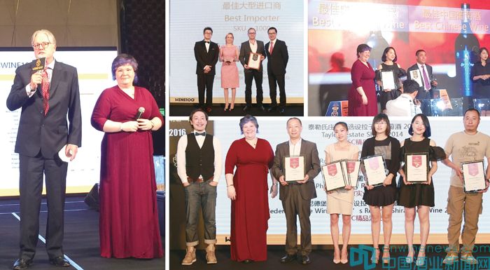近日,歷時3天的2016WINE100葡萄酒大賽在上海落下帷幕,包括黑金獎、性價比甄選獎等在內的448個獎項終有歸屬。WINE100葡萄酒大賽創始人蔣臨淵、總經理華志遠、評委會主席Andrew Caillard、聯合主席趙鳳儀Fongyee Walker及諸多酒商代表出席了6月27日舉行的頒獎禮。