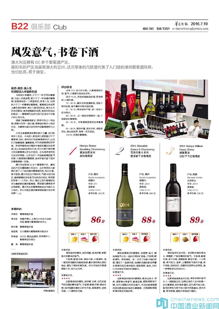 澳大利亞擁有60多個葡萄酒產區,最知名的產區當屬南澳大利亞州,這次帶來的幾款酒代表了入門級的澳洲葡萄酒風格,性價比高,易于接受。澳大利亞位于南半球,氣候與我們相反,釀酒葡萄的采收季節也和我們相反,是那里的秋季1~3月份。所以,理論上我們能喝到當年分最新鮮的澳洲葡萄酒,螺旋蓋也最能保存這種新鮮。澳大利亞的葡萄酒是適合中國大眾口味的,所以中國在澳洲葡萄酒銷售市場中排名第一。