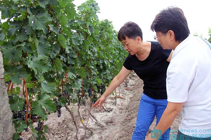 在中葡酒業生產技術副總監陳新軍的帶領下,“重走絲綢之路”代表團一行人走訪了瑪納斯境內的瑪河葡園,這里種植有赤霞珠、霞多麗、美樂、白詩南、貴人香、馬瑟蘭和西拉等多個葡萄品種,樹齡在12-16年。
