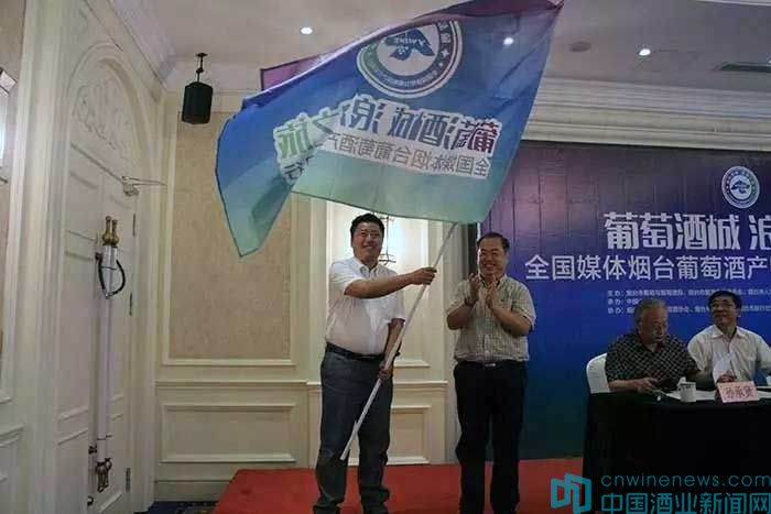 最后,煙臺市委宣傳部常務副部長李明為本次活動授旗,新華社記者滕軍偉作為本次媒體行記者代表接旗,“葡萄酒城浪漫之旅——全國媒體煙臺葡萄酒產區采風行”活動正式啟動,接下來30多家全國主流媒體將走進煙臺產區進行實地采訪。