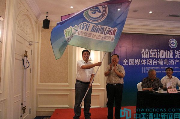 中共煙臺市委宣傳部常務副部長李明出席儀式并向采訪團授旗。