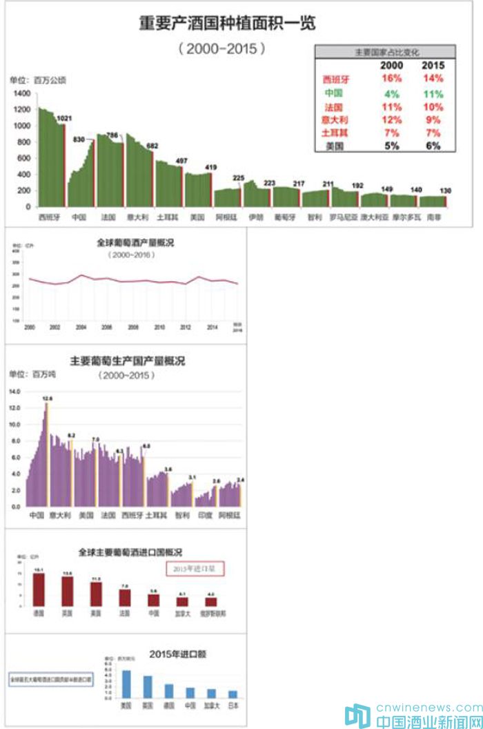 自2000年以來,西班牙、法國和意大利等歐盟國家葡萄種植面積顯著下降,美國和南美國家保持穩定。