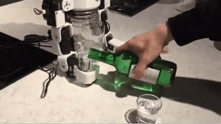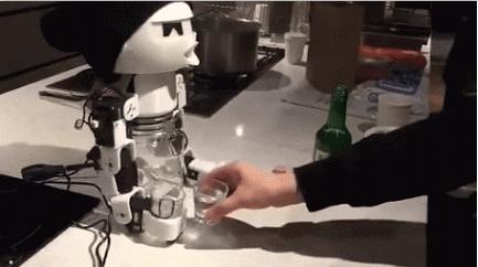 日前,有網友曝光了一款陪酒機器人。就是在你孤單寂寞一個人無聊的時候,它可以陪你喝酒,像真人一樣。在你倒滿酒后,會自動端起酒杯和你碰杯,然后暢飲,暢飲之后,會作出搖頭晃腦的狀態,非常可愛。更為傳神的是,竟然在喝過酒后臉蛋還會變紅,表情十足,非常的逼真。不過,目前還不清楚這款機器人的產地,網友們猜測發明出自日本。