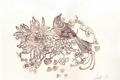 以酒作畫,想想就已經(jīng)讓人微醺了!用葡萄酒作為顏料,畫法雖然與普通水粉畫相近,但是紅酒自身的發(fā)酵與氧化作用使得色彩過渡更加巧妙獨特。以不同品種的濃淡來調(diào)色,讓作品不止有酒香,更充滿了迷人風情。