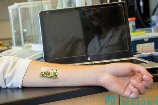 據相關研究人員介紹,他們的研究成果由類似臨時紋身貼的貼紙和柔韌的電路板組成。貼紙粘到皮膚上時會釋放出一種叫做毛果堿的導汗化學成分,接下來的15分鐘里,該裝置會利用電化學的方法來測定血液中的酒精含量,電路板所負責的工作是把已收集到的信息由藍牙傳送到手機上。