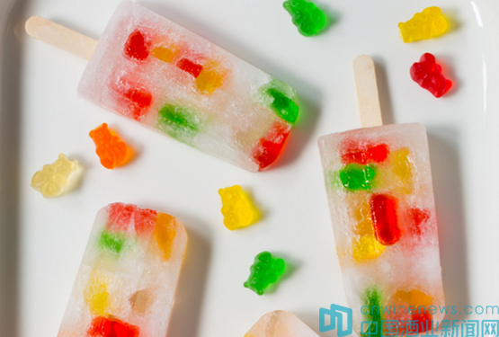 將小熊糖倒入伏特加中浸泡至少24小時(shí),充分吸收酒味,將泡好的小熊糖和伏特加均勻放進(jìn)冰格里四分之一滿,倒入雪碧在冰格里混合均勻到二分之一滿,放入冰箱凝結(jié)成塊,然后再均勻加入四分之一冰格量的小熊伏特加并用雪碧混合成整個(gè)冰棍,冰凍一夜。