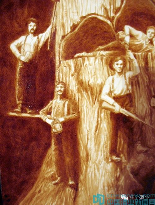 “啤酒作畫”沒有錯,沒有任何顏料,只用啤酒為唯一的顏料。這種以大麥芽、酒花、水為主要原料,并經(jīng)酵母發(fā)酵作用釀制而成的飽含二氧化碳的低酒精度酒,由于干涸后,能形成一道淺褐色的痕跡,而被藝術(shù)家作為天然顏料。