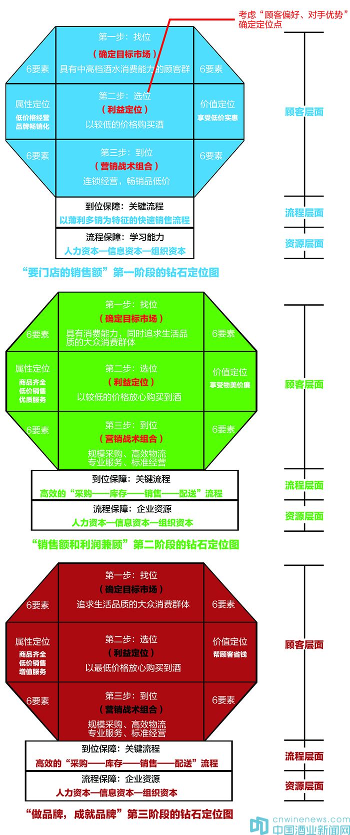 第一個發展階段定位是“要門店的銷售額”,詳見第一階段鉆石定位圖。