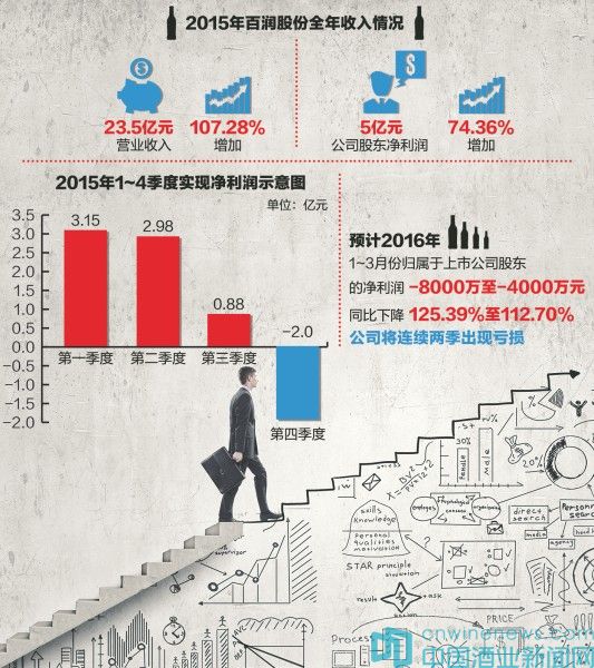 作為知名預調雞尾酒品牌“RIO(銳澳)”的母公司,百潤股份2015年業績較上年雖有大幅增長,但卻遠不如業內預想中的靚麗。從其單季度業績看,公司第四季度表現甚為不佳,虧損2億元左右。
