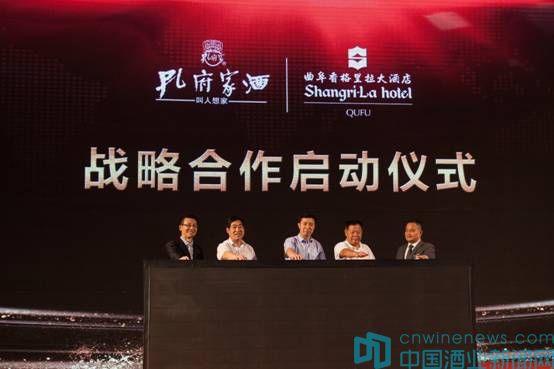 會議最后,孔府家酒與香格里拉大酒店進(jìn)行了“儒家文化,周游列國”戰(zhàn)略合作啟動儀式,曲阜市常務(wù)副市長劉曉林、濟寧廣播電視臺黨委書記、臺長張作昌、曲阜市政協(xié)主席孔令玉、香格里拉大酒店曲阜有限公司總經(jīng)理曲乃江、孔府家酒業(yè)有限公司總經(jīng)理劉濤出席了啟動儀式。