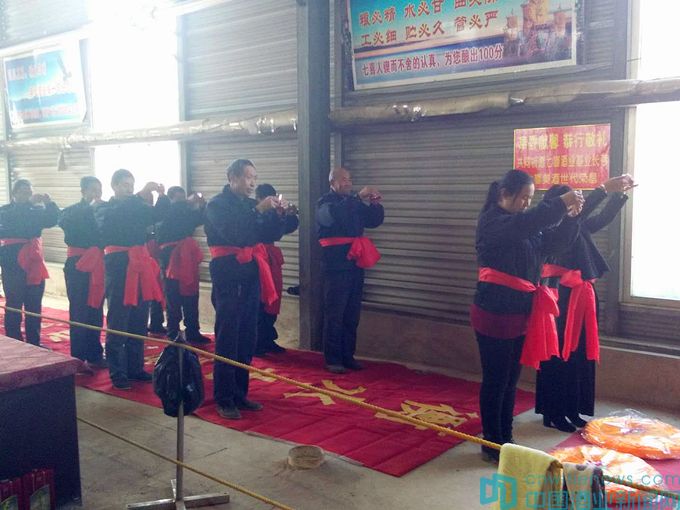 上午十點(diǎn)十八分,七喜酒業(yè)公司的窖池車間內(nèi),開窖儀式正式開始,準(zhǔn)備開窖的兩個(gè)藏酒窖邊上標(biāo)注著“七喜酒業(yè)八號(hào)、九號(hào)藏酒窖”,池子中間用紅紙黑字醒目的標(biāo)注著藏酒時(shí)間為1825天。