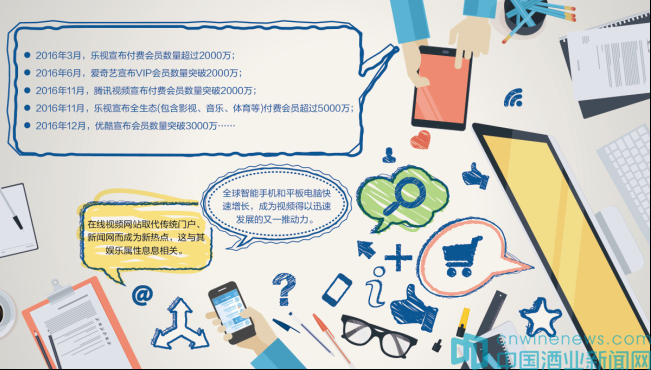 2016年3月,樂視宣布付費會員數(shù)量超過2000萬;2016年6月,愛奇藝宣布VIP會員數(shù)量突破2000萬;2016年11月,騰訊視頻宣布付費會員數(shù)量突破2000萬;2016年11月,樂視宣布全生態(tài)(包含影視、音樂、體育等)付費會員超過5000萬;2016年12月,優(yōu)酷宣布會員數(shù)量突破3000萬……
