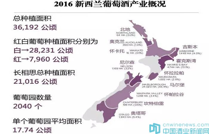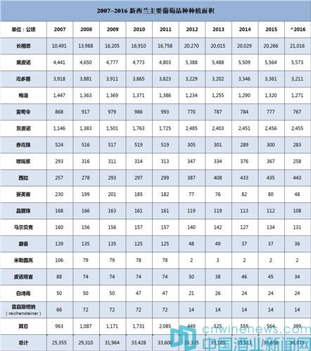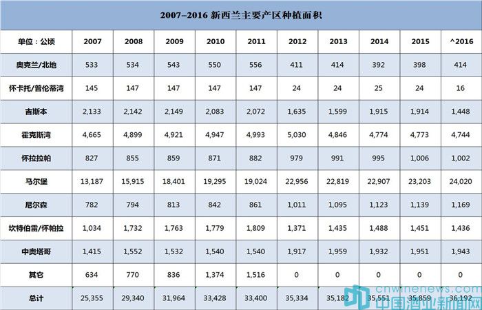 2、2016年新西蘭葡萄酒種植面積及產量