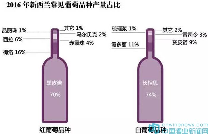 這些葡萄品種的產量占比分別為:長相思(74%)>霞多麗(11%)>灰皮諾(9%)>雷司令(3%)>瓊瑤漿(1%);其它2%。