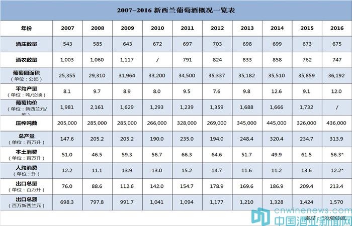 4、新西蘭葡萄酒莊數量、產量、出口數據一覽表(近10年數據)