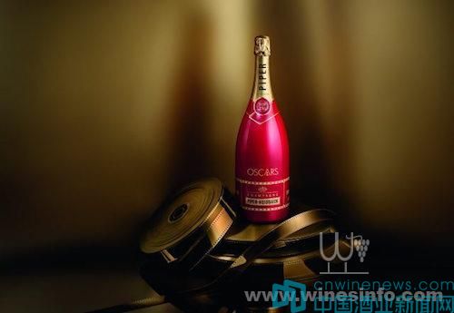 香檳被描述為“為這一絕佳夜晚搭配的一瓶絕佳的香檳,白雪Piper-Heidsieck Cuvée Brut1.5升裝身披一襲紅裙,瓶身還帶有金色電影膠片的設計。”
