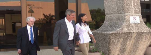 班克斯(中)與其妻子在圣安東尼法庭外