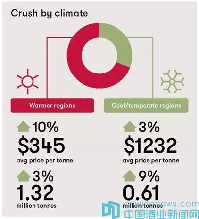 溫暖產區葡萄均價為345澳元每噸,同比上升10%