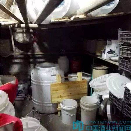 該紅酒生產加工窩點十分隱蔽,位于農批市場地下室的香蕉庫內,加工環境十分簡陋,衛生狀況也很差,各種加工設施、包裝材料以及原材料都雜亂堆放在一起,就連加工裝箱的紅酒也都堆在一角,雜亂不堪。