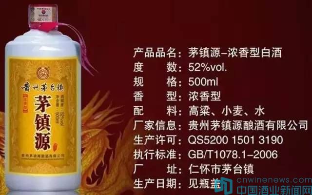 再看上面這款茅鎮源酒,廠址顯示同樣是來自于茅臺鎮,仔細看看右邊的說明文字,還是濃香型。