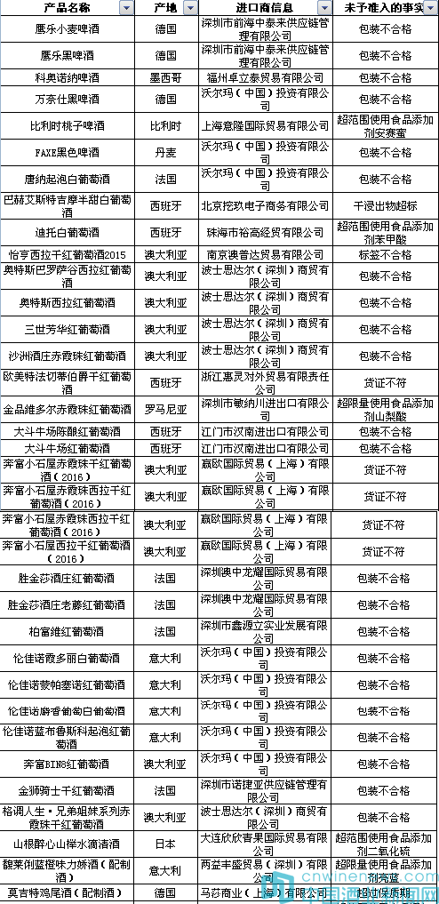 記者查閱未予準(zhǔn)入的信息,其中有35批次酒類不合格,詳見下圖。