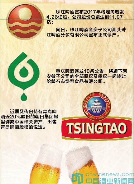 珠江啤酒出現管理層人事變動、宣布定增、關閉分廠;重慶啤酒轉讓旗下子公司;朝日傳出要轉手青島啤酒股份……