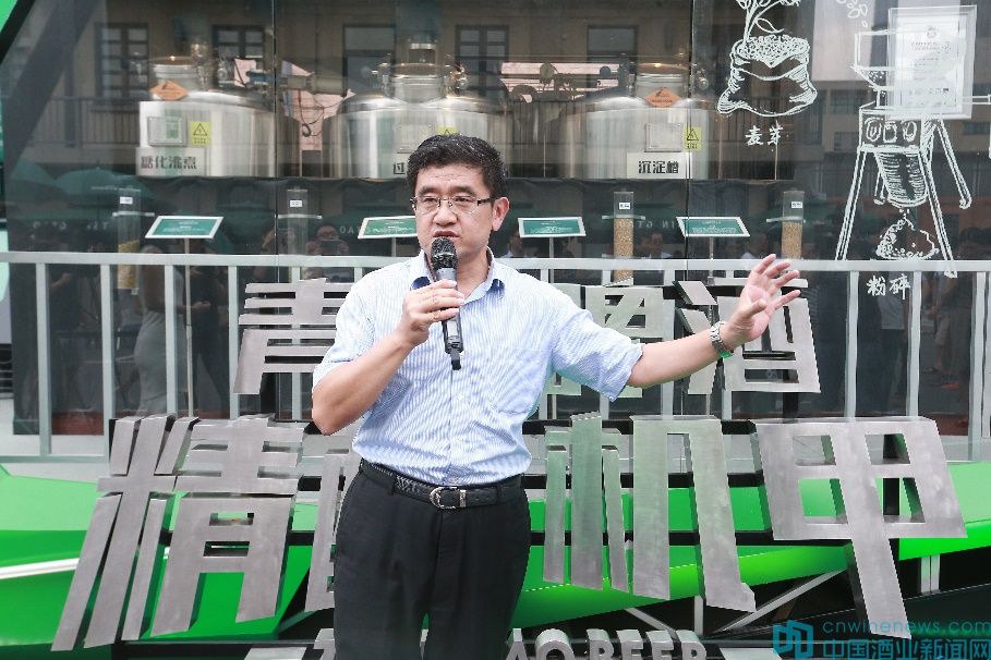 (圖說:青啤公司制造副總裁、國家級釀酒師董建軍介紹精釀機甲)