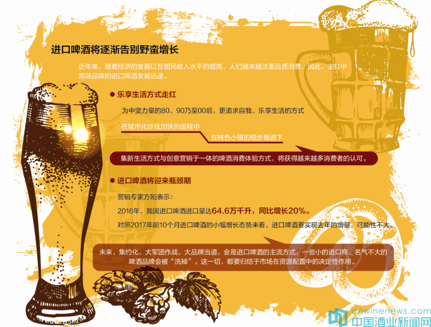 也有業內人士指出,進口啤酒會繼續打造高端化的品牌形象,通過活動營銷等不斷給目標消費者制造驚喜,通過打造迎合中產階層的消費場景,提升溢價空間。而國產啤酒與進口啤酒的競爭,將日漸激烈。