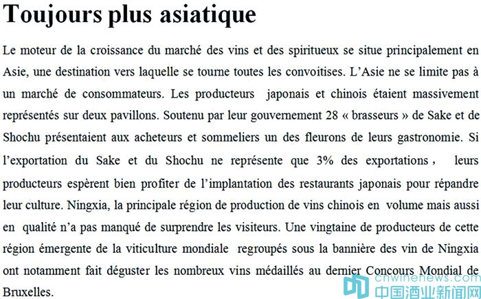亞洲,是讓銷售商充滿無限渴望的地方,是整個葡萄酒和烈酒市場發展的巨大“發動機”。亞洲市場并不僅僅局限于其消費群體,在會展中,有兩個展廳被中國和日本生產商所占據。