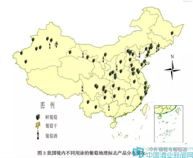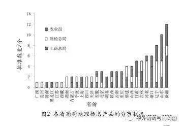 統計結果表明:我國葡萄及其產品地理標志總數逐年增加,但各個部門的審定個數不同,工商總局審定較多;不同省份間申請數量也有差異;我國境內的葡萄地理標志用途以鮮葡萄為主,境外則以葡萄酒居多;葡萄及產品地理標志不僅地理分布廣泛,而且品種多樣;但我國葡萄地理標志產品專用標志使用情況不佳。