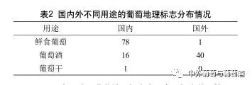 由表2可知,已在我國成功注冊的地理標志中,可分為3種產品:葡萄干類、葡萄酒類和鮮葡萄類。其中,國外的葡萄干類地理標志尚為空白,而我國擁有“吐魯番葡萄干”地理標志。