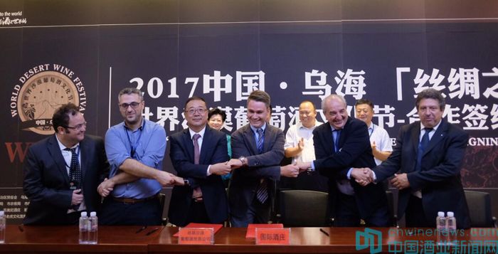 葡萄酒文化節(jié)期間,共達(dá)成了7項(xiàng)協(xié)議,分別是中國內(nèi)蒙古自治區(qū)烏海市與法國波爾多利布爾納市簽署友好城市合作備忘錄,內(nèi)蒙古工業(yè)大學(xué)烏海學(xué)院與香港波士頓葡萄酒商學(xué)院簽訂編制沙漠葡萄酒教材及交流合作協(xié)議,烏海市農(nóng)牧業(yè)局與李華團(tuán)隊(duì)簽訂烏海產(chǎn)區(qū)沙漠葡萄酒感官特征研究工作協(xié)議,陽光田宇酒莊與西北農(nóng)林科技大學(xué)葡萄與葡萄酒學(xué)院簽訂院企合作協(xié)議,烏海葡萄與葡萄酒協(xié)會(huì)與智利皮斯科協(xié)會(huì)簽訂友好合作協(xié)議,絲路沙漠葡萄酒貿(mào)易公司與意大利、葡萄牙、墨西哥、希臘酒莊簽訂銷售代理協(xié)議。