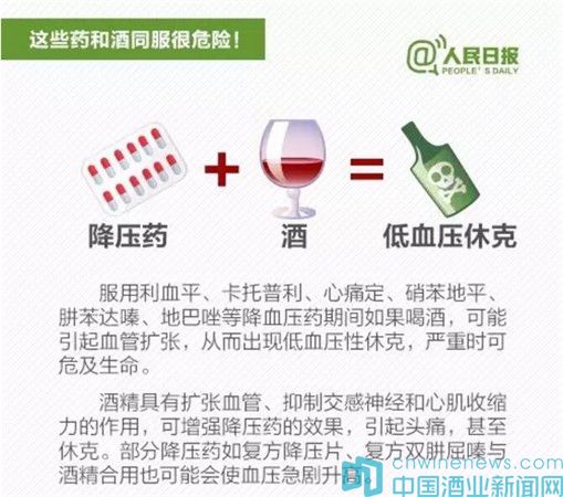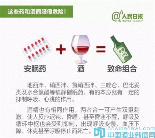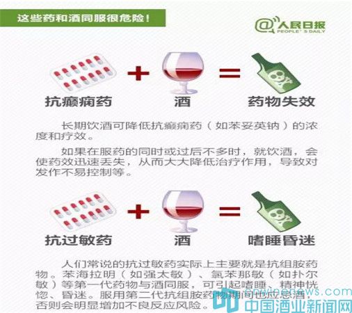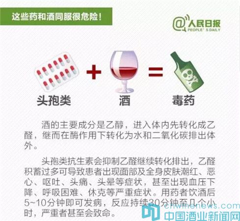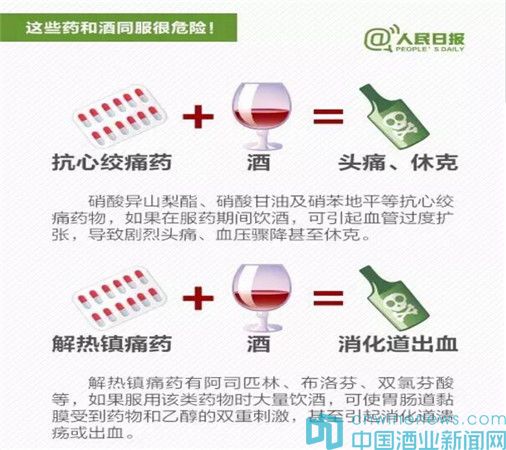 據(jù)“人民日?qǐng)?bào)”新媒體消息,春節(jié)將至,飲酒助興在所難免。但喝酒不注意,和一些藥物同時(shí)服用,容易出大問題:①感冒藥+酒:增加肝臟衰竭風(fēng)險(xiǎn);②頭孢類抗生素+酒:嚴(yán)重將致命;③解熱鎮(zhèn)痛藥+酒:可能引起消化道出血;④安眠藥+酒:恐致命……吃這些藥時(shí)千萬不能喝酒。