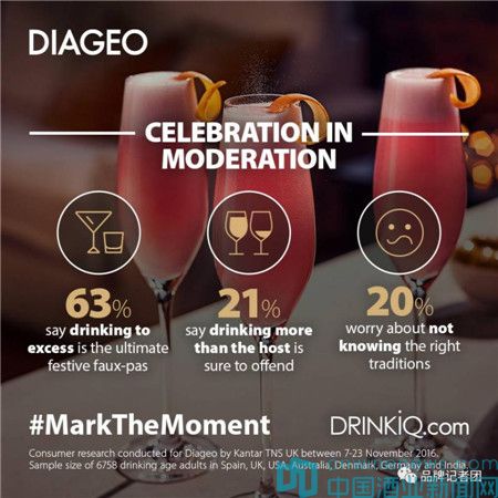帝亞吉歐酒與社會研究總監Carolyn Panzer指出:“祝酒在慶祝活動中并非新鮮事,它從新石器時代就已存在,且一直傳承至今。我們發現,全球約有三分之二的人在慶祝活動上有祝酒的習慣,同時場地和同伴被視為與祝酒時的飲品同等重要。祝酒已成為一種全球化的慶祝語言,意在通過這個古老而具儀式感的傳統,讓人們盡情享受特殊時刻。
