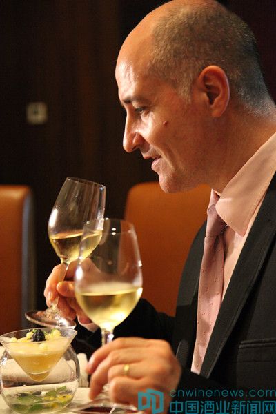 這種天然甜葡萄酒酒精度通常高于14.5%,有非常濃郁可口的水果、干果、堅果、花香、香料、可可等風味,還有較高的酸度和甜度與之平衡,讓人非常容易接受和喜愛。在當晚的廣州媒體晚宴上,每一道菜中都搭配有一款天然甜葡萄酒,還有一款干白或干紅與之相對比與食物的搭配效果。記者驚奇地發(fā)現(xiàn),居然每一款天然甜葡萄酒都能與當晚的佳肴作搭配,無論是作為冷盤的海蜇蝦啫喱、魚子醬和香草花椰菜意式奶凍,還是熱菜中的鵝肝培根餃子、鵪鶉腿、鵪鶉蛋和開心果泥,甚至是主食中的燴和牛肉、“惠靈頓式”五香牛柳和羊肉湯,以及最后的甜品巧克力蛋糕等,都能搭配得相得益彰。Eric Aracil先生甚至向記者表示,因為天然甜葡萄酒中非常多樣化的風味,較高的酸度和甜度等,它與口味濃重的薄荷和大蒜搭配也能有驚奇的效果。