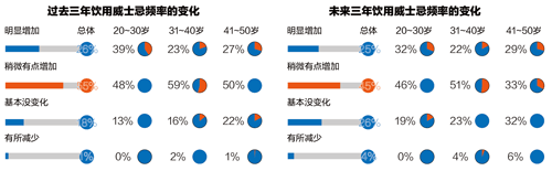 在高凈值威士忌飲用者中,81%的人過(guò)去三年增加了威士忌的飲用頻率,七成人群表示未來(lái)三年仍會(huì)持續(xù)增加飲用。