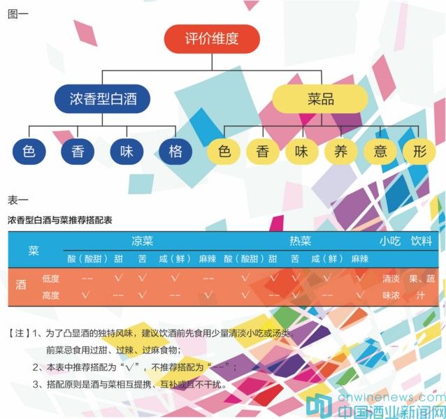 從色、香、味、格等多方面進行評價。菜與酒均為多香味的復合體,它們除了有其自身的風味特色以外還往往被注入了靈魂,成為擁有人類智慧結晶的藝術品。品鑒一杯酒或一個菜品要從多角度、全方面地評價,從簡單的感官認知最終上升到意識層面的理解,從而有目的地選取。見圖一。