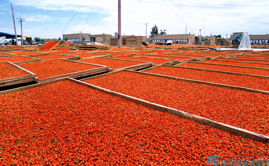 從幕阜山脈一路向西北方前行。寧夏中寧縣年均氣溫9.5℃,晝夜溫差大,光照足,降水少,是枸杞最喜愛的生長環境。這里有600年枸杞種植歷史,是全國十大藥材生產基地之一。